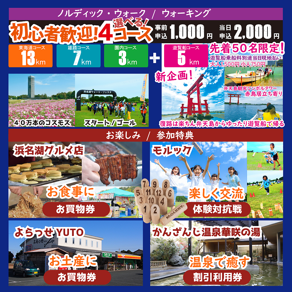 お問合せ 電話 053-578-1501(浜名湖ウォーク・フェスタ実行員会 担当:内藤)